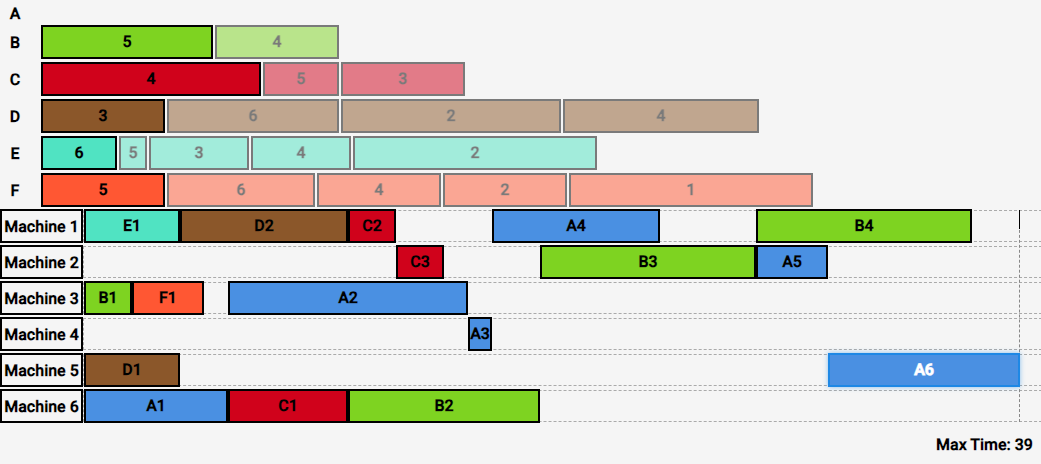1 8 0 5 // Job 3: Machine 1 for 8 units, Machine 0 for 5 units